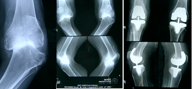So after we evaluated and investigated him we found the patient was fit for surgery. We operated on one knee and after five days we did the other knee, considering his age and other complications (myocardial infarction, pulmonary embolism and stroke) that could arise in this age group. Post-Surgery, he was made to walk immediately.