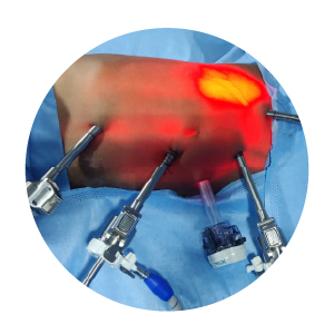 Unlike conventional open surgery, robotic surgery requires only small incisions. Carbon dioxide gas gently expands the abdomen, creating a clear surgical field while minimising tissue damage.